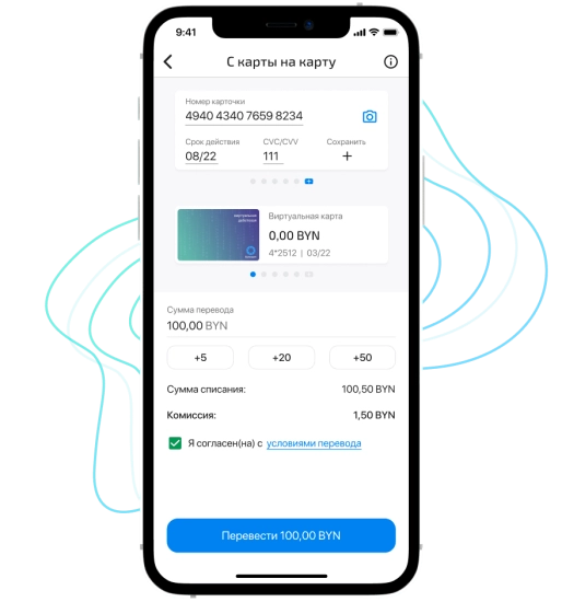 - С виртуальной картой вы можете совершать покупки в интернет-магазинах, проводить оплаты через ЕРИП.